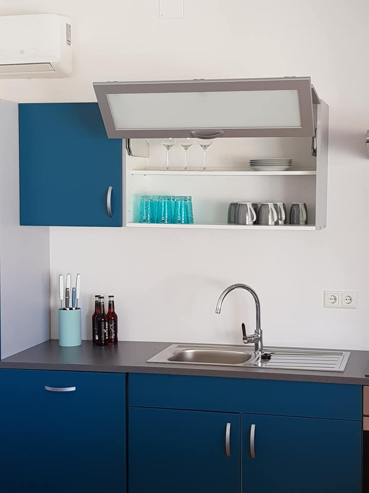 Nichtraucherzimmer, Klima, TV, WLAN, Tresor, Dusche, Toilette, Föhn, Waschmaschine, Wäscheständer, Kühlschrank, Herd, Backofen, Microwelle, Spülmaschine, Kaffeemaschine, Wasserkocher, Toaster, Geschirr.
