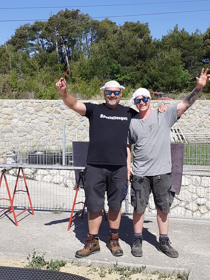 Dank unseren Poolbauern, Rene und Nico, konnte der Pool fertig gestellt werden. Wir danken euch von Herzen und freuen uns, wenn ihr euren Urlaub wieder auf Rab genießen könnt!